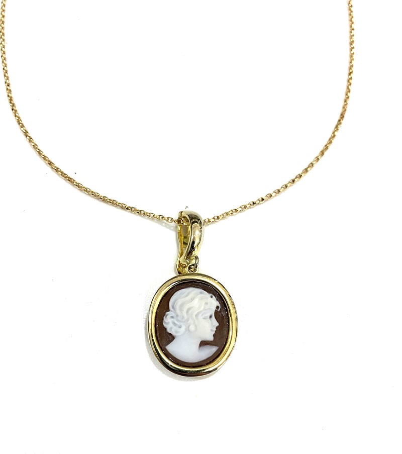 Ciondolo Cameo Italiano con Cameo Inciso a Mano con donna P21