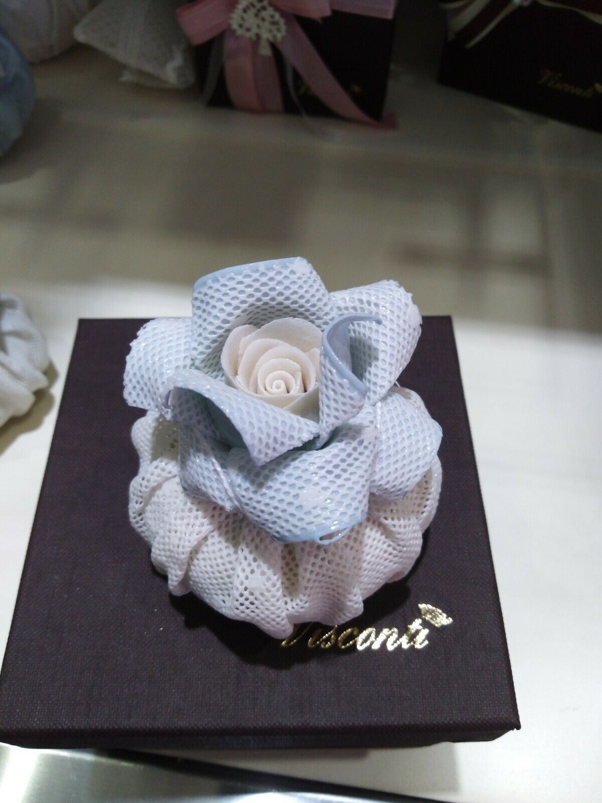 Bomboniera in porcellana Capodimonte Creazioni Visconti Saccottino piccolo N19B