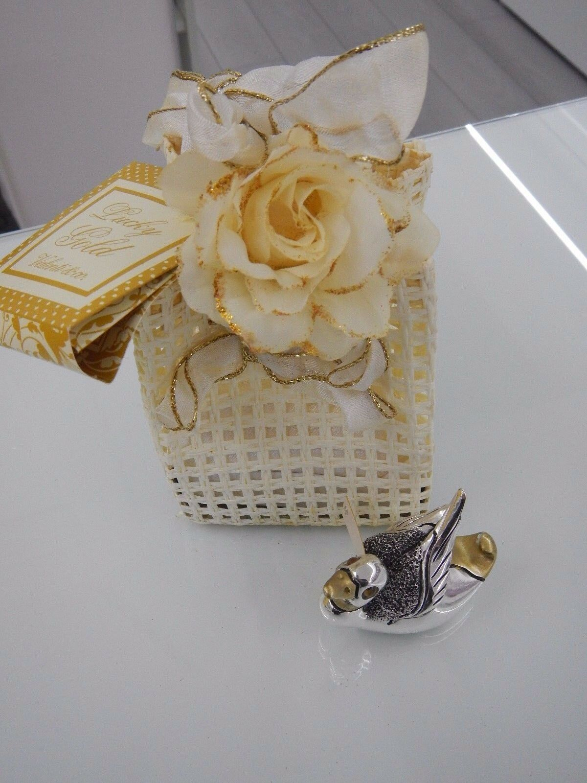 Anatra laminata argento Valenti Lucky Gold con sacchetto