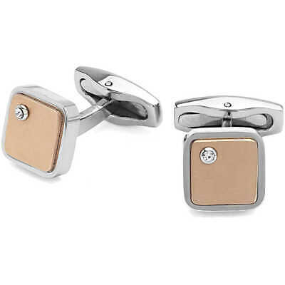 Gemelli uomo Gioielli Comete Zip in acciaio lucido/rosa e zirconi bianchi UGM180