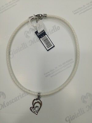 Collana Blu Amante in pelle bianca  con ciondolo cuore in argento 925 BBR934OR -50%