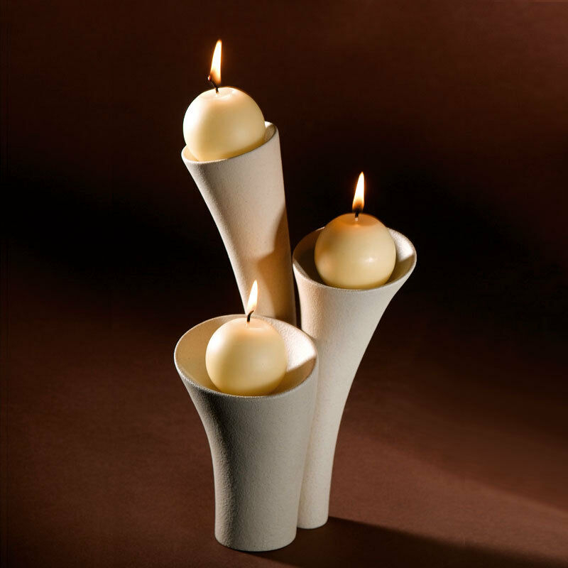 Scultura Design Trittico Portacandele in gres porcellanato Lineasette F453 Made In Italy