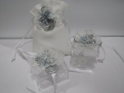 Kit 3 pz Bomboniera Sacchetti Argento Cuorematto D5167 D5169 D5168