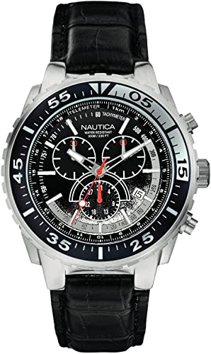 Orologio cronografo uomo Nautica con cinturino in pelle nero A14678G