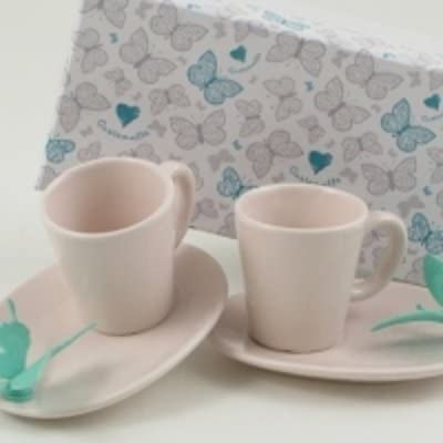 Tazzina con piattino in ceramica Cuorematto con farfalla Tiffany cod. D4985